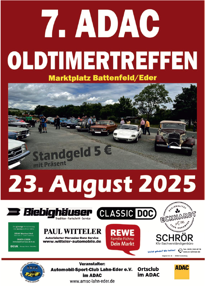 Wir freuen uns auf zahlreiche Oldtimer ab 09:00 Uhr auf dem Marktplatzgelände in Battenfeld